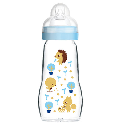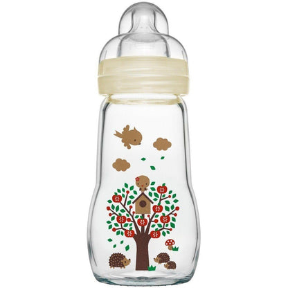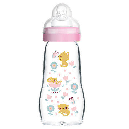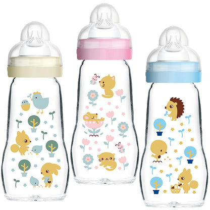 Desenvolvidas e rigorosamente testadas pela equipe de especialistas médicos e de segurança, designers e engenheiros da MAM, as garrafas de vidro MAM Feel Good são fortes, duráveis e naturalmente livres de BPA. As garrafas MAM Feel Good são feitas de vidro resistente à temperatura. Como resultado, a garrafa pode ser aquecida no microondas ou aquecedor de mamadeiras, resfriada rapidamente, lavada na lava-louças e esterilizada em altas temperaturas. As mamadeiras também oferecem uma escolha mais ecológica e ambiental para os pais, e seu formato redondo e ergonômico significa que o bebê pode segurá-las facilmente.