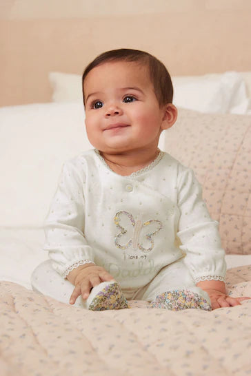 |BabyGirl| Fato De Dormir Para Bebê Com Bordado Creme (0 meses a 2 anos)