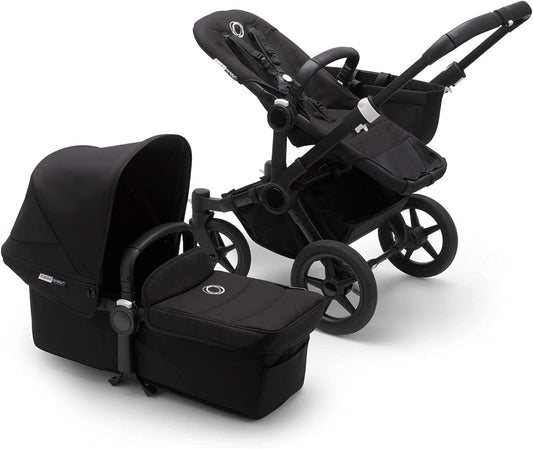 Bugaboo Carrinho de passeio Fox 5 All-Terrain, carrinho de bebê 2 em 1 com suspensão total, dobra fácil, berço espaçoso, assento extensível para crianças pequenas, manobrabilidade com uma mão, chassi preto e capota de sol preta
