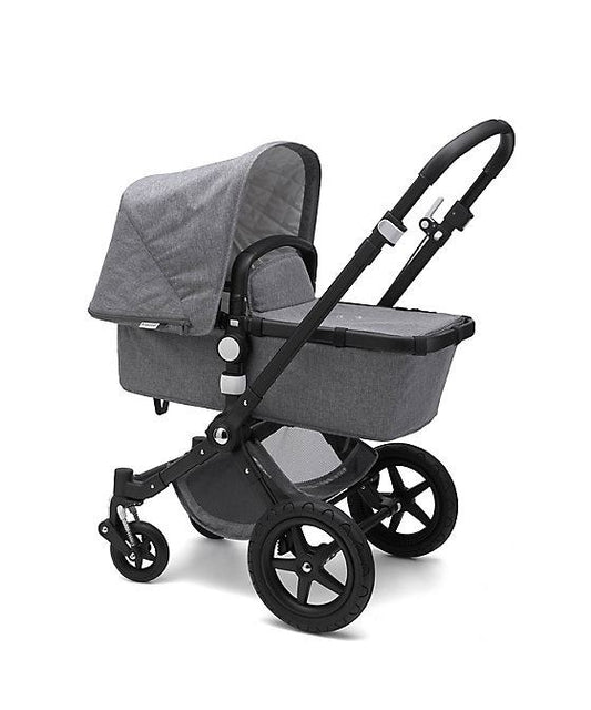 Bugaboo Cameleon 3 Plus: carrinho de passeio versátil 2 em 1 com guidão giratório para um passeio confortável, alcofa de 0 a 4 anos, chassi preto e capota de sol cinza mosqueada