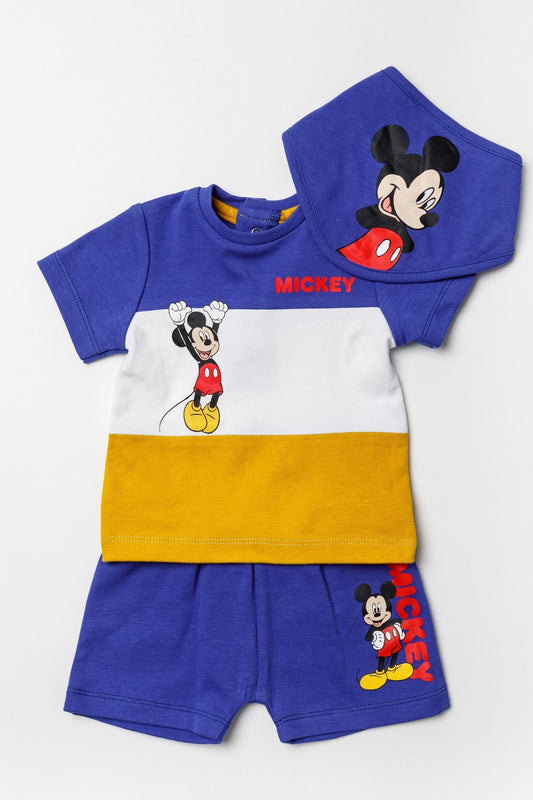 Disney - Conjunto azul Mickey Mouse, short e babador