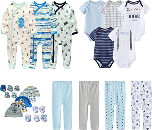 MAMIMAKA recém-nascido de enxoval com presente 27 peças Conjunto para, roupas para bebês, macacões, calças essenciais e acessórios de 0 a 6 meses