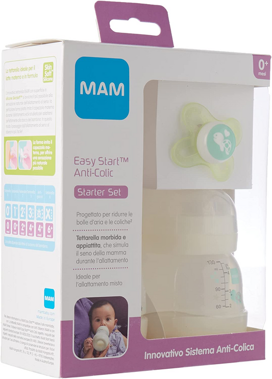 MAM Easy Start(TM) Anti-Colic Starter Set 0+ Meses, Conjunto de 2 Mamadeiras MAM Easy Start 130ml e 260ml com Dummy MAM Start Nanò 0-2meses, Neutro
