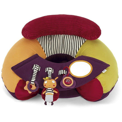 Assento divertido para o seu pequeno se sentar confortavelmente enquanto eles jogam. Assento de chão inflável com painel de jogo interativo e destacável, com espelho, dentes e chocalhos.