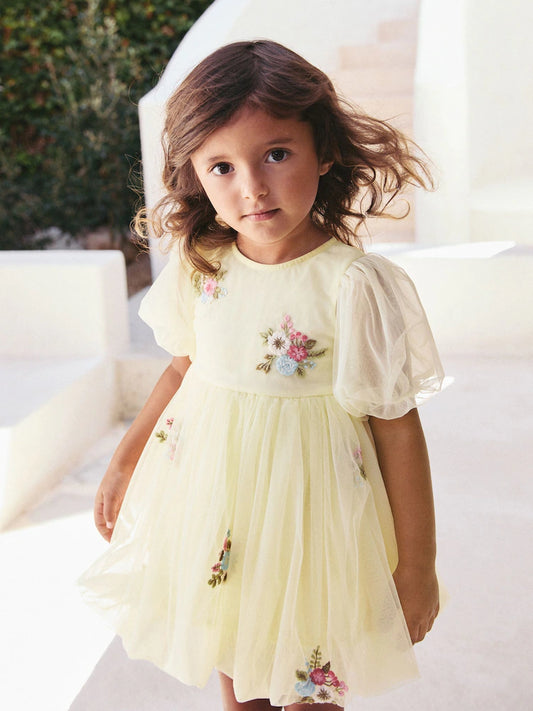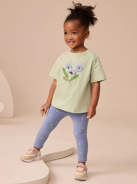 |Girl| Camiseta De Manga Comprida Canelada Com Estampa Floral Amarelo Ocre (3 meses a 7 anos)