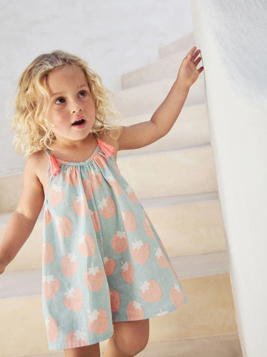 |Girl| Vestido Azul De Manga Comprida Com Personagem De Natal (3 meses a 7 anos)