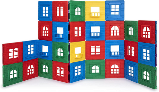 Playmags Conjunto de 60 peças Conjunto de construção de ladrilhos magnéticos 3D: ladrilhos de construção de ímã forte e durável inclui 30 molduras de janela e 30 conjuntos de janelas de clique