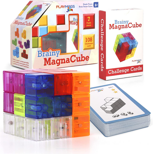 Playmags Cubo inteligente com cartões de desafio de cubo inteligente, blocos de construção para jogos criativos abertos, brinquedos educativos para crianças de 3 anos ou mais