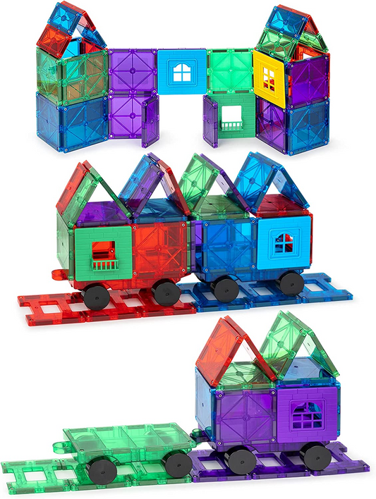 Playmags Conjunto de ladrilhos de construção magnéticos de 50 peças para crianças com 4 carros - Blocos de construção magnéticos 3D mais fortes - Conjunto de construção e ladrilhos magnéticos para crianças - Brinquedos magnéticos