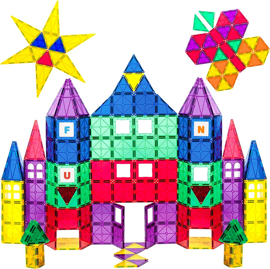 Playmags Conjunto de 100 blocos magnéticos 3D para crianças - Aprenda formas, cores e alfabetos - STEM Stronger Magnets Toys - Blocos de construção magnéticos - Azulejos magnéticos coloridos e duráveis para crianças e livro de ideias