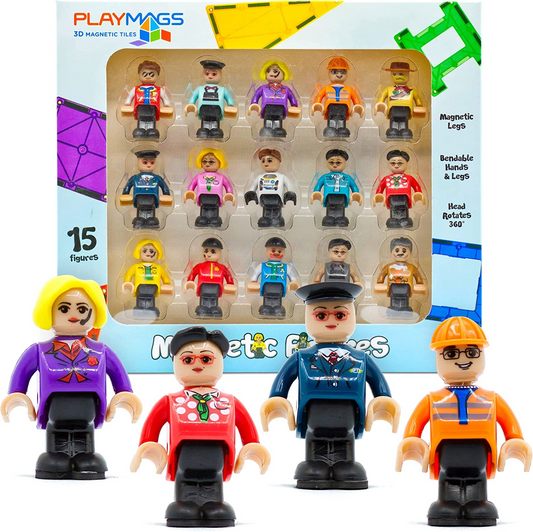 Playmags Figuras magnéticas - Figuras comunitárias Conjunto de 15 peças - Play People Perfeito para ladrilhos magnéticos - Brinquedos de aprendizagem STEM Crianças - Pacote de expansão de ladrilhos magnéticos - Compatível com outras marcas