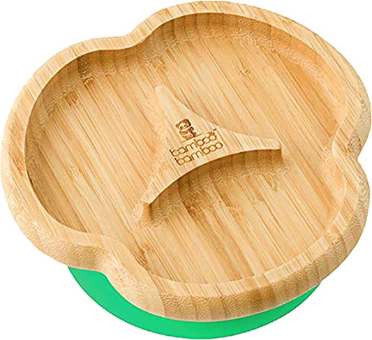 Bamboo Bamboo Tabla de Bambú para Bebés - Niños y Niños con Ventosa para Bebés | No tóxico | Fresco al tacto | Ideal para el destete dirigido por el bebé (divisor, verde)