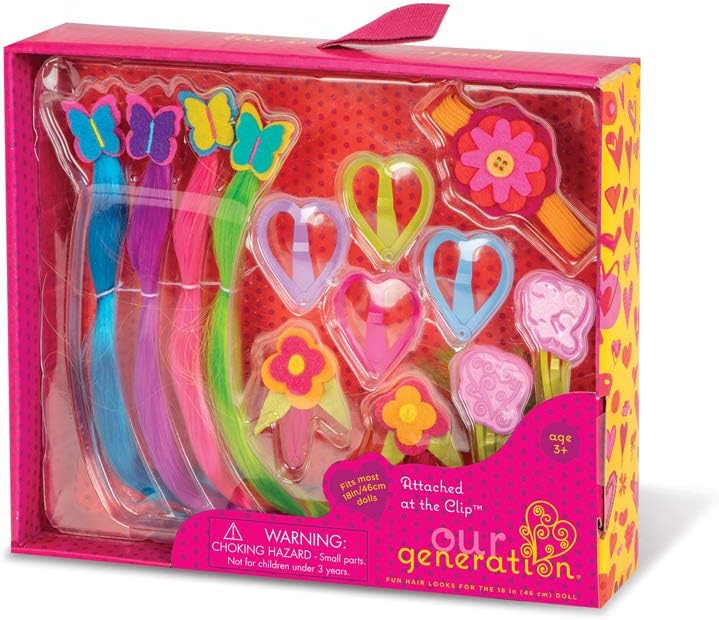 A Nossa Geração Presa no Clip – Conjunto de Acessórios de Extensões de Cabelo Glamourosas para Bonecas de 18 Polegadas – Conjunto de Penteados com 26 Peças