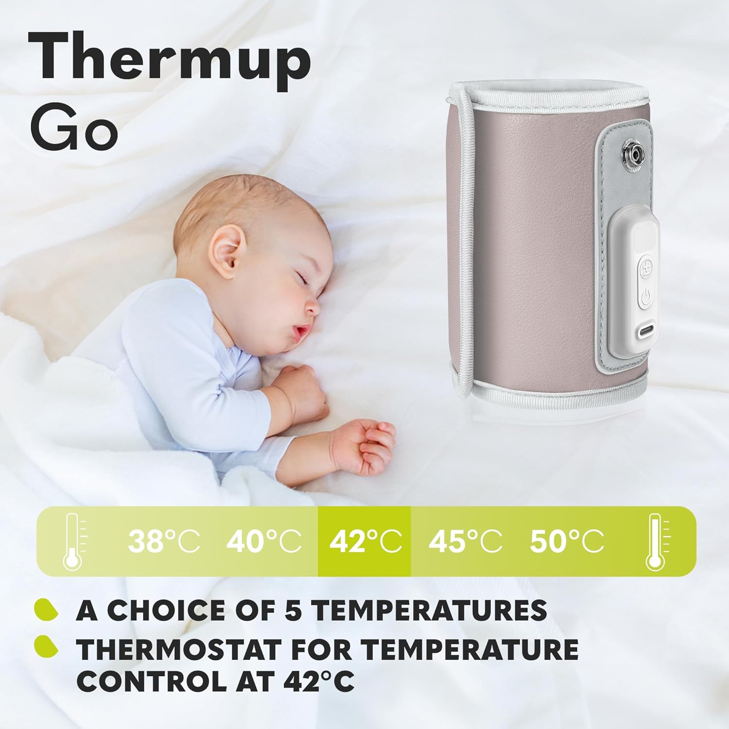 LIONELO Thermup Go Calentador de biberones portátil para mantener la temperatura, cable USB alimentado para mantener calientes la leche y los alimentos del bebé, calentador de biberones para coche para temperatura constante, sin BPA, compacto y ligero