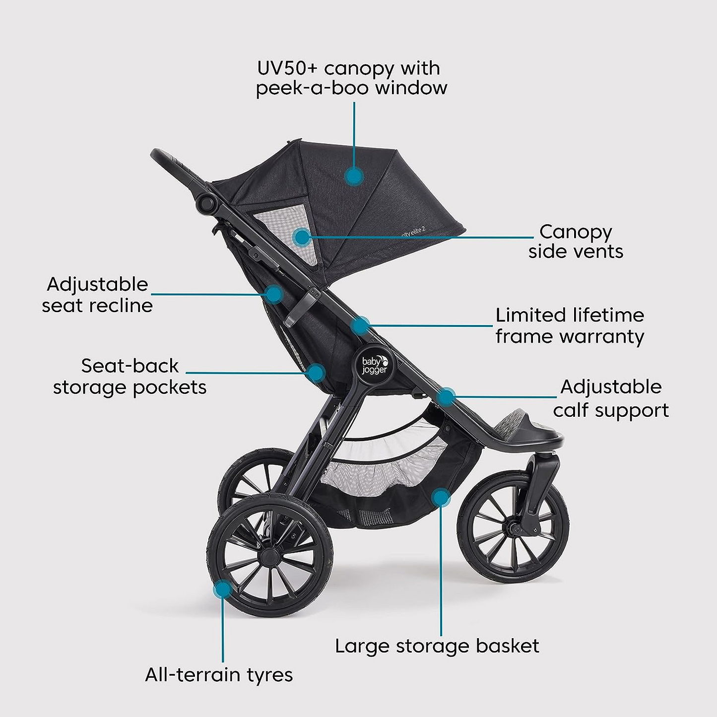 Cochecito todoterreno Baby Jogger City Elite 2 | Cochecito plegable y portátil | Negro azabache)