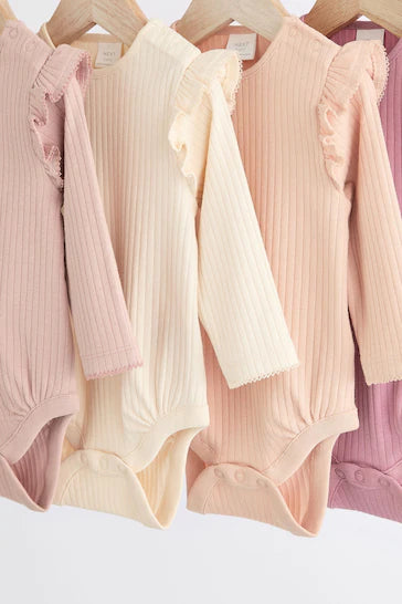 |Niña| Body con volantes y manga larga en rosa bebé/crema, paquete de 4