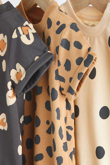 |Niña| Pack de 3 mamelucos tipo camiseta para bebé - Estampado animal Negro/Crema