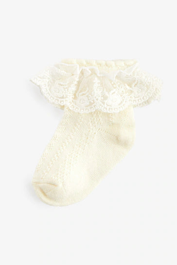 |Niña| Pack de 1 calcetín de encaje para ocasión - crema (0 meses - 2 años)