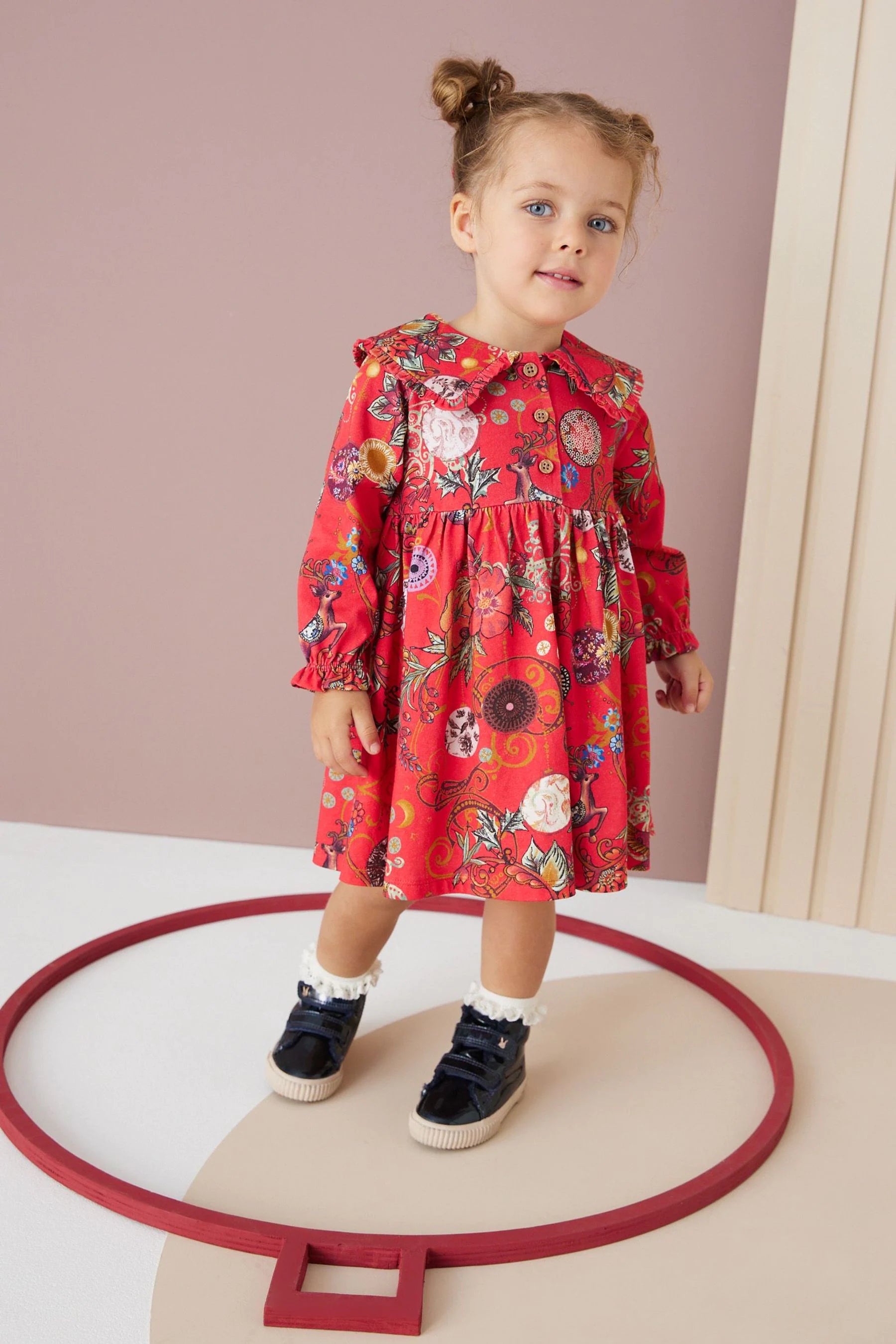 |Niña| Vestido de tarde con cuello de flores - Rojo - (3 meses-7 años)