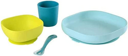 BEABA - Set de alimentación de silicona - 4 piezas - Azul