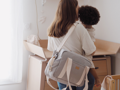 Viene con una práctica bolsa térmica integrada para mantener fría o caliente la comida de tu bebé. Además, viene con asas para cochecito, una correa para el hombro desmontable y un cambiador acolchado.