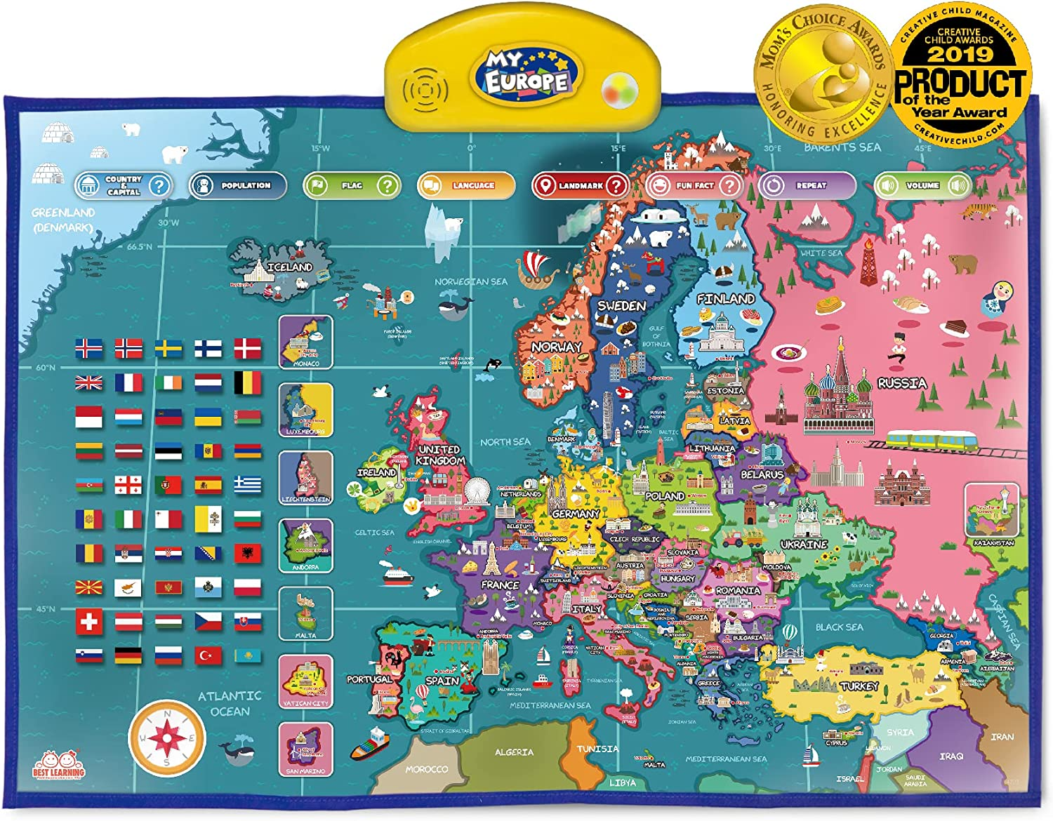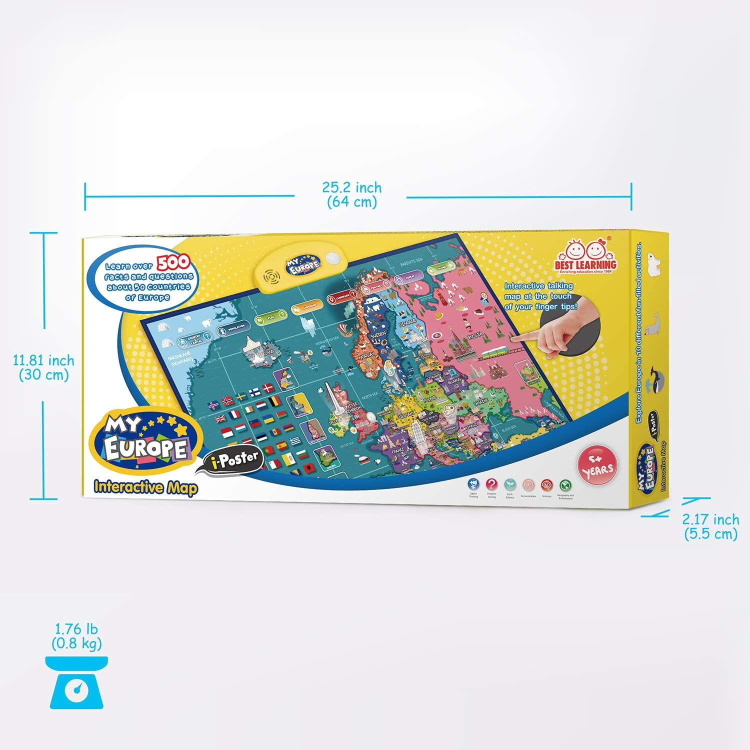 BEST LEARNING i-Poster My Europe Interactive Map - Juguete educativo parlante para niños y niñas de 5 a 12 años | Videojuego de geografía de la UE 5, 6, 7 Regalo de cumpleaños
