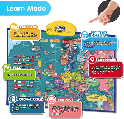 ¡Producto infantil creativo del año y ganador de la medalla de oro Mom's Choice! El mapa parlante educativo inteligente interactivo más popular de Europa. Aprender nunca ha sido tan fácil y divertido.