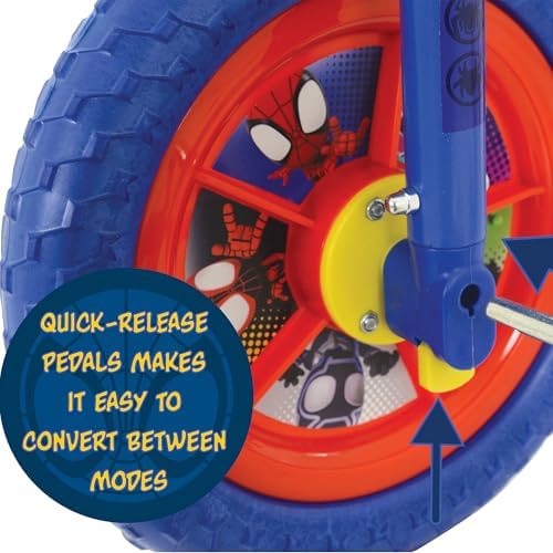 - BICICLETA CONVERSÍVEL DO HOMEM-ARANHA E SEUS AMIGOS INCRÍVEIS - Prepare-se para embarcar em uma aventura com a Bicicleta de Treinamento 2 em 1 do Homem-Aranha e Seus Amigos Incríveis de 10 polegadas! Aproveite para explorar o mundo do ciclismo com nossa Bicicleta de Treinamento e Equilíbrio Infantil. Ótima como primeira bicicleta para o fã do Homem-Aranha e Seus Amigos Incríveis, esta bicicleta 2 em 1 infantil se transforma em uma bicicleta de equilíbrio de 10 polegadas com roda livre e uma bicicleta infantil com pedais e rodinhas em minutos - Sem necessidade de ferramentas!