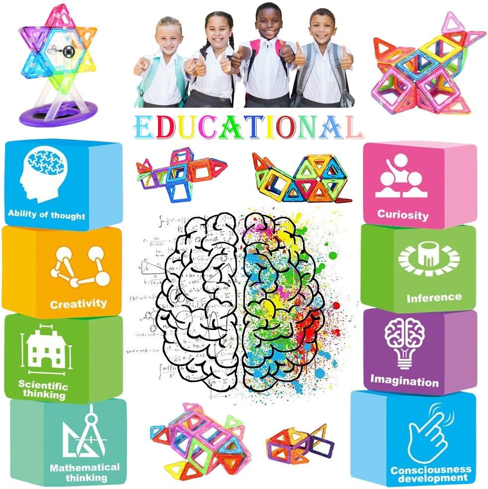 - Desarrollo creativo y cerebral: su hijo puede crear figuras geométricas en 3D con estos bloques de construcción magnéticos mientras juega, reconociendo naturalmente los principios de los imanes al sentir el poder magnético.