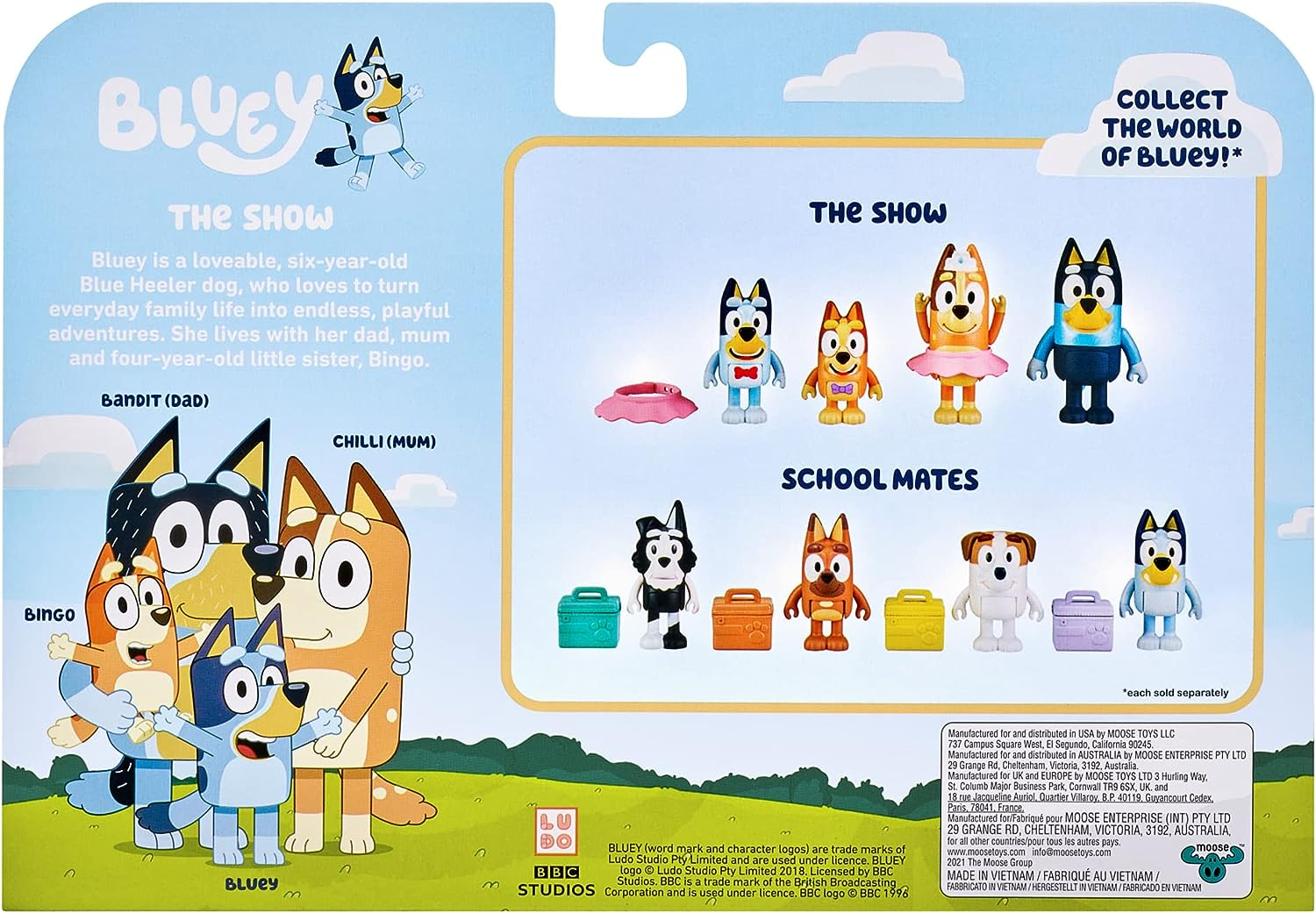 - El paquete Bluey School Mates 4 incluye a Bluey y tres de sus amigos: Jack, Pretzel y Mackenzie.