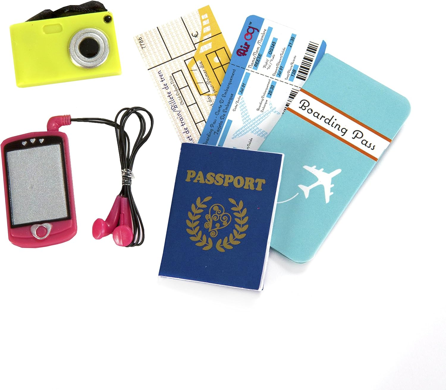 - Inclui boneca, duas roupas completas e acessórios de viagem divertidos; 16 artigos no total.