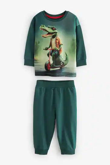 |Niño| Pack de 2 pijamas acogedores de elefante, cocodrilo, verde y azul (de 9 meses a 10 años)