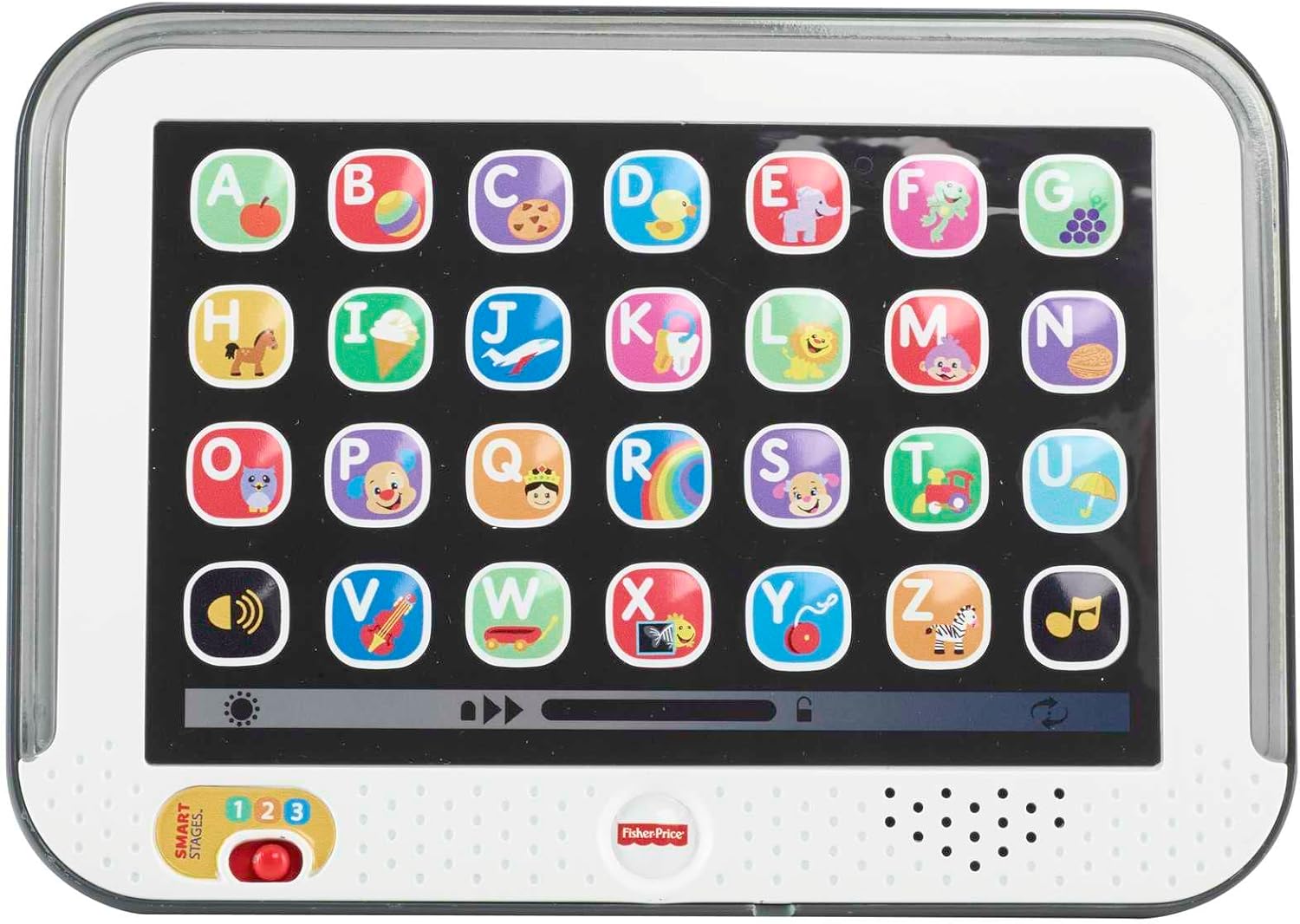 Brinquedo educativo Fisher-Price Tablet de faz de conta para crianças pequenas com luzes, música e conteúdo inteligente, cinza, versão em inglês do Reino Unido (Laugh & Learn), CDG33