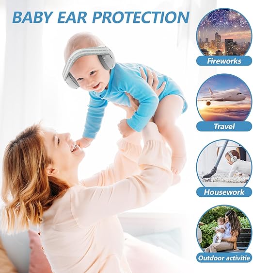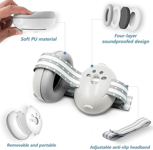 - 🔇PROTEJA A SU BEBÉ DEL RUIDO: Múltiples capas de espuma reductora de ruido con una nueva arandela amortiguadora, cortando la energía del ruido de manera efectiva, logrando una reducción de ruido SNR de 25 db, que puede bloquear suficiente ruido dañino y proteger mejor la audición del bebé.