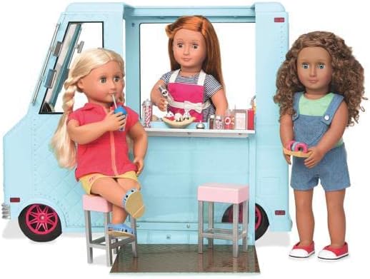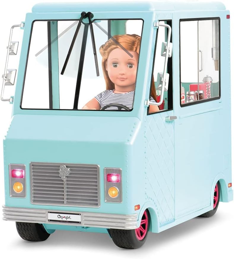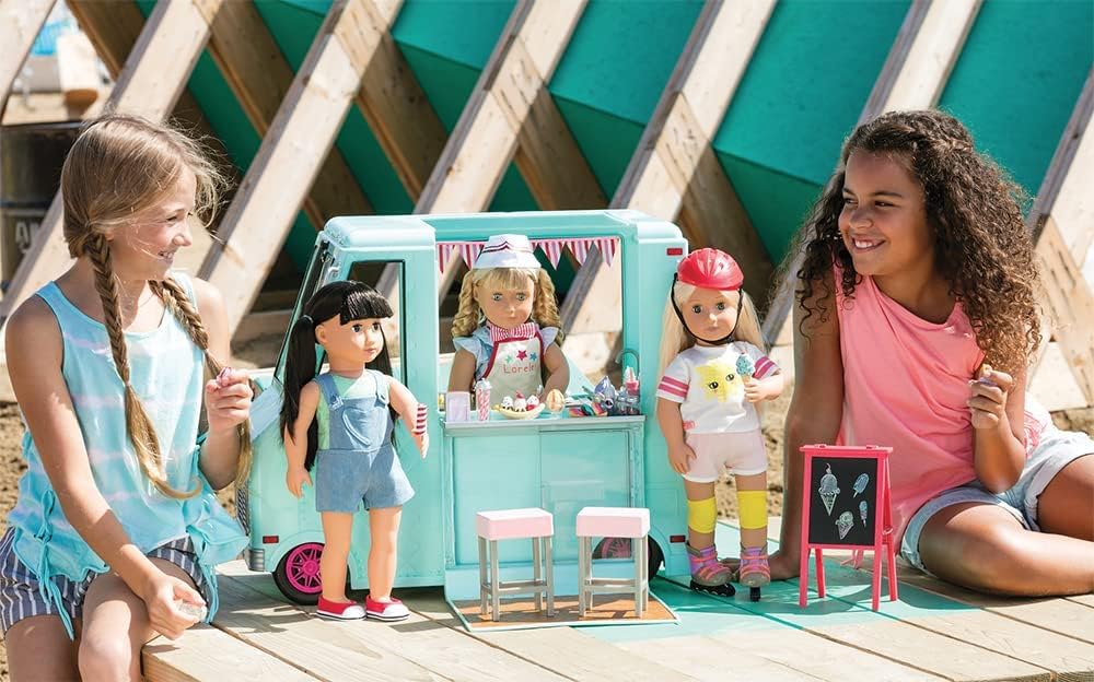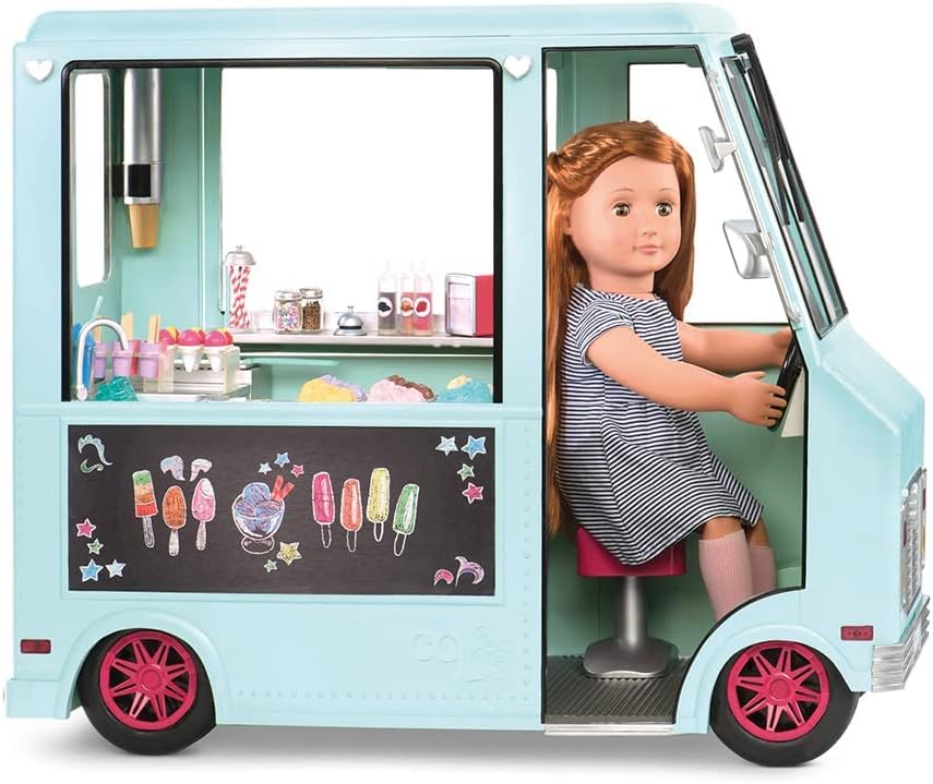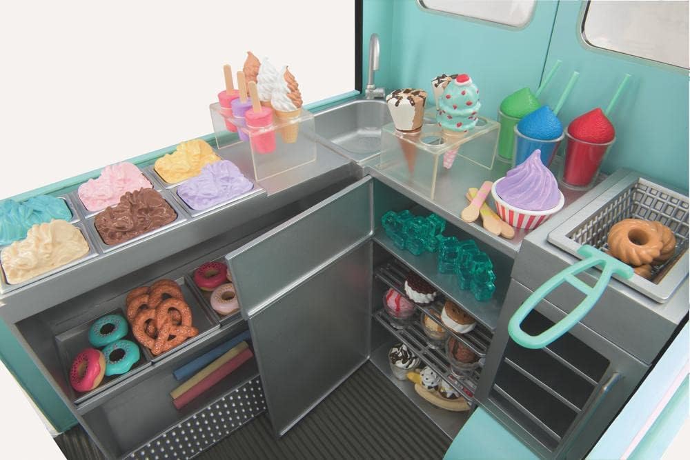 Camião de gelados Sweet Stop da Our Generation – Conjunto de camião de gelados azul para bonecas de 45 cm – Conjunto de veículo e acessórios com 130 peças