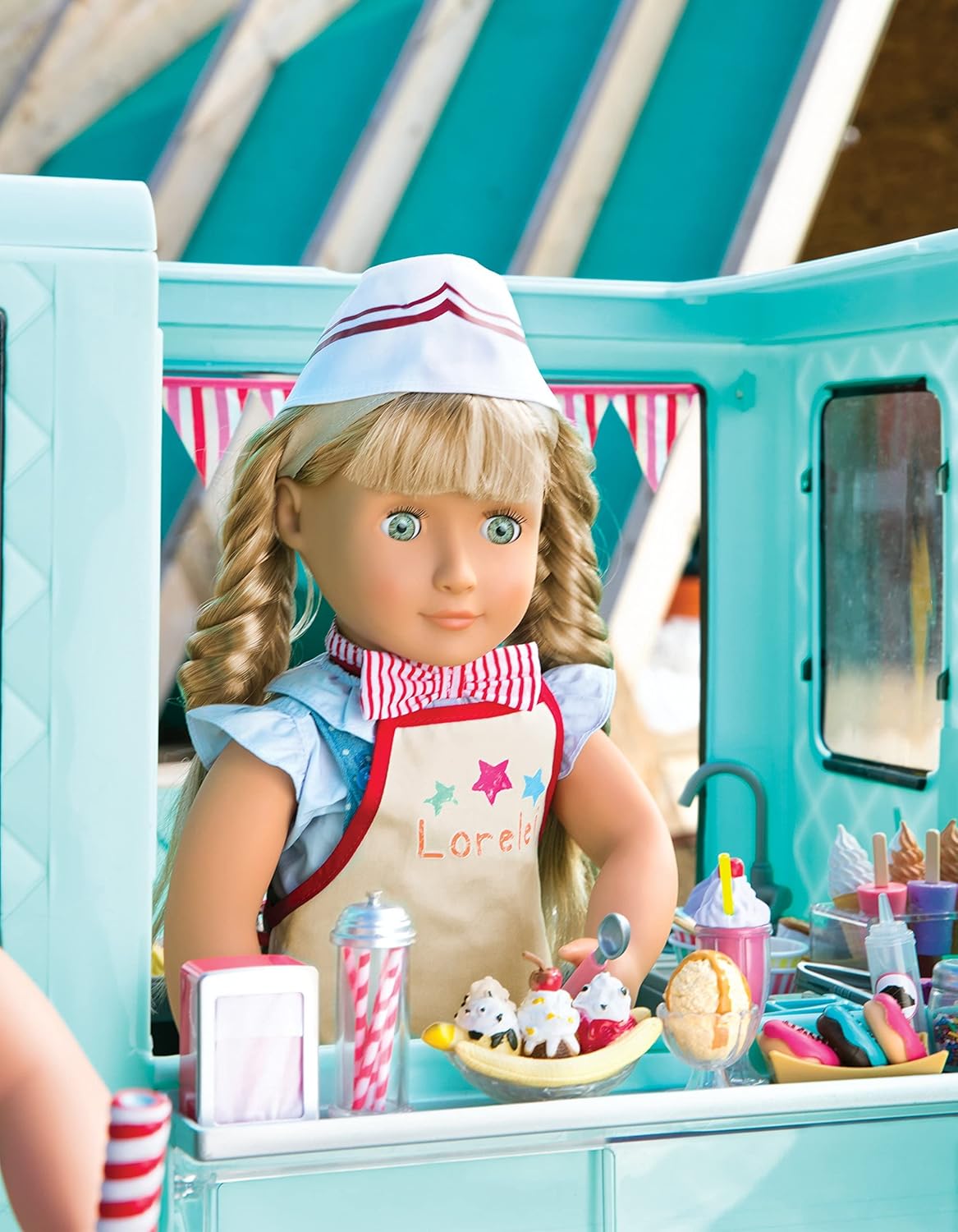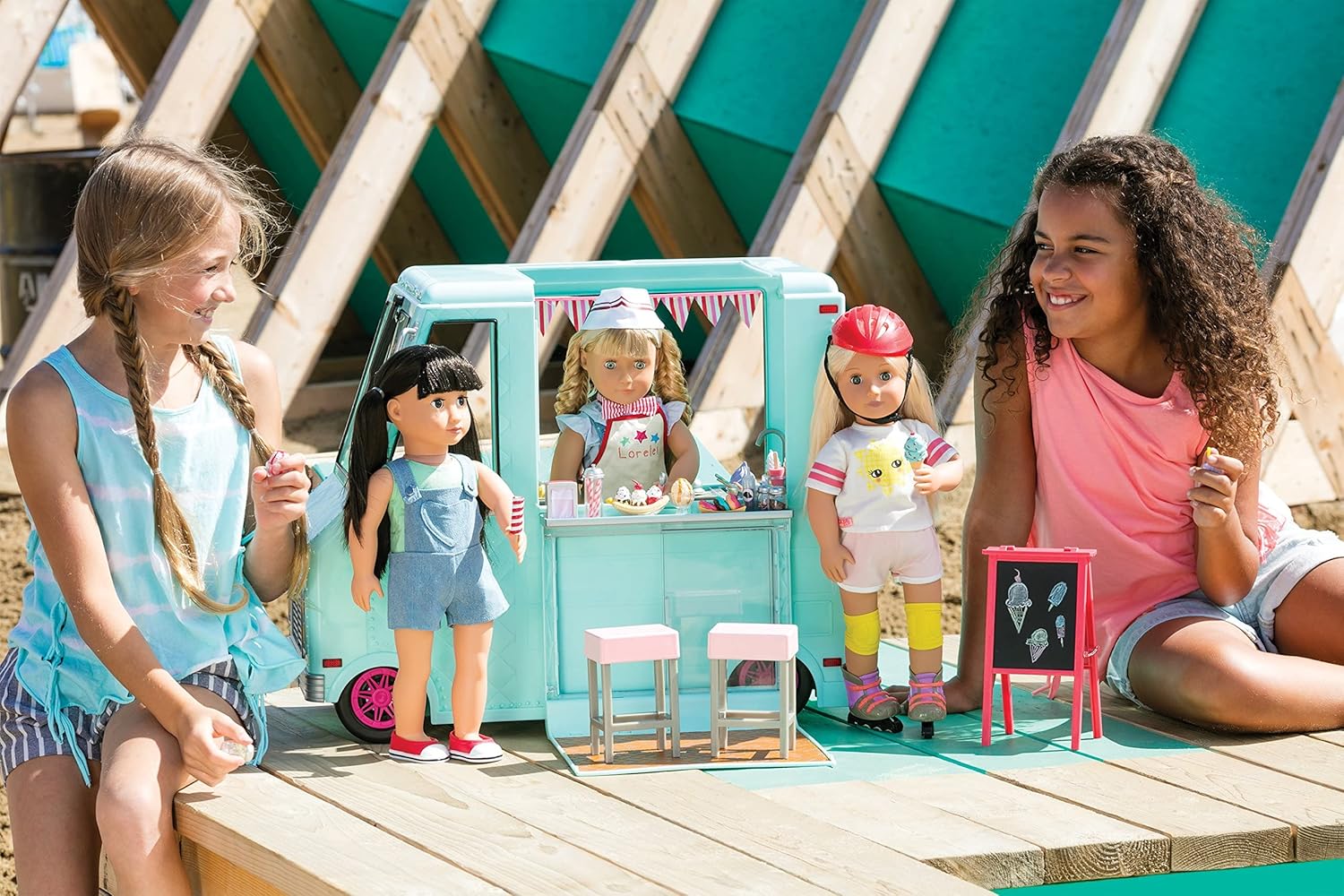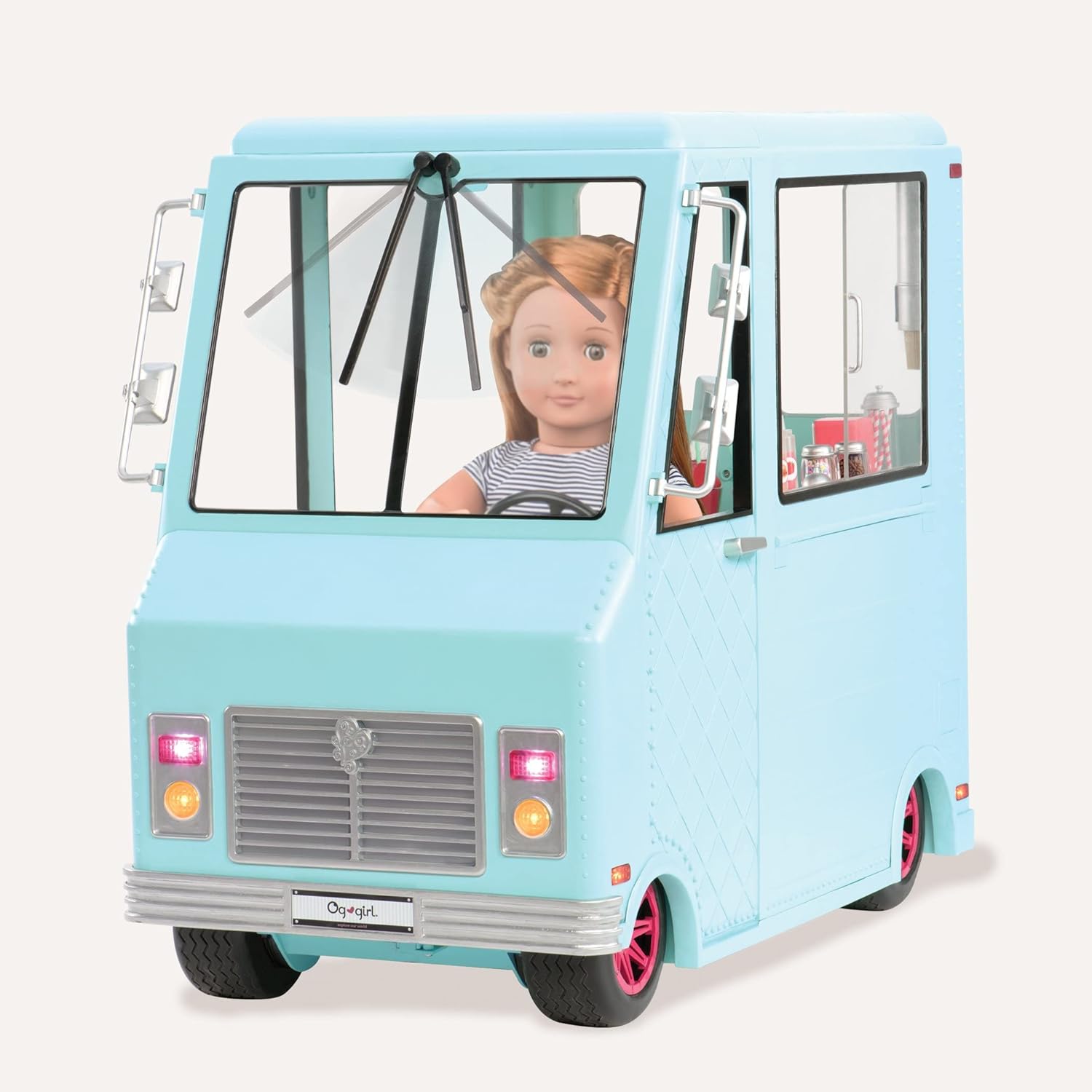 Camião de gelados Sweet Stop da Our Generation – Conjunto de camião de gelados azul para bonecas de 45 cm – Conjunto de veículo e acessórios com 130 peças