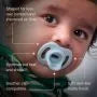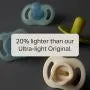 A chupeta de silicone inteiriça mais leve*. É 20% mais leve que a nossa chupeta Ultra-leve original e foi projetada para permanecer no lugar por mais tempo. Com bico e protetor simétricos, ela se ajusta confortavelmente ao rosto do bebê, em qualquer posição, e ajuda a mantê-lo acalmado por mais tempo.