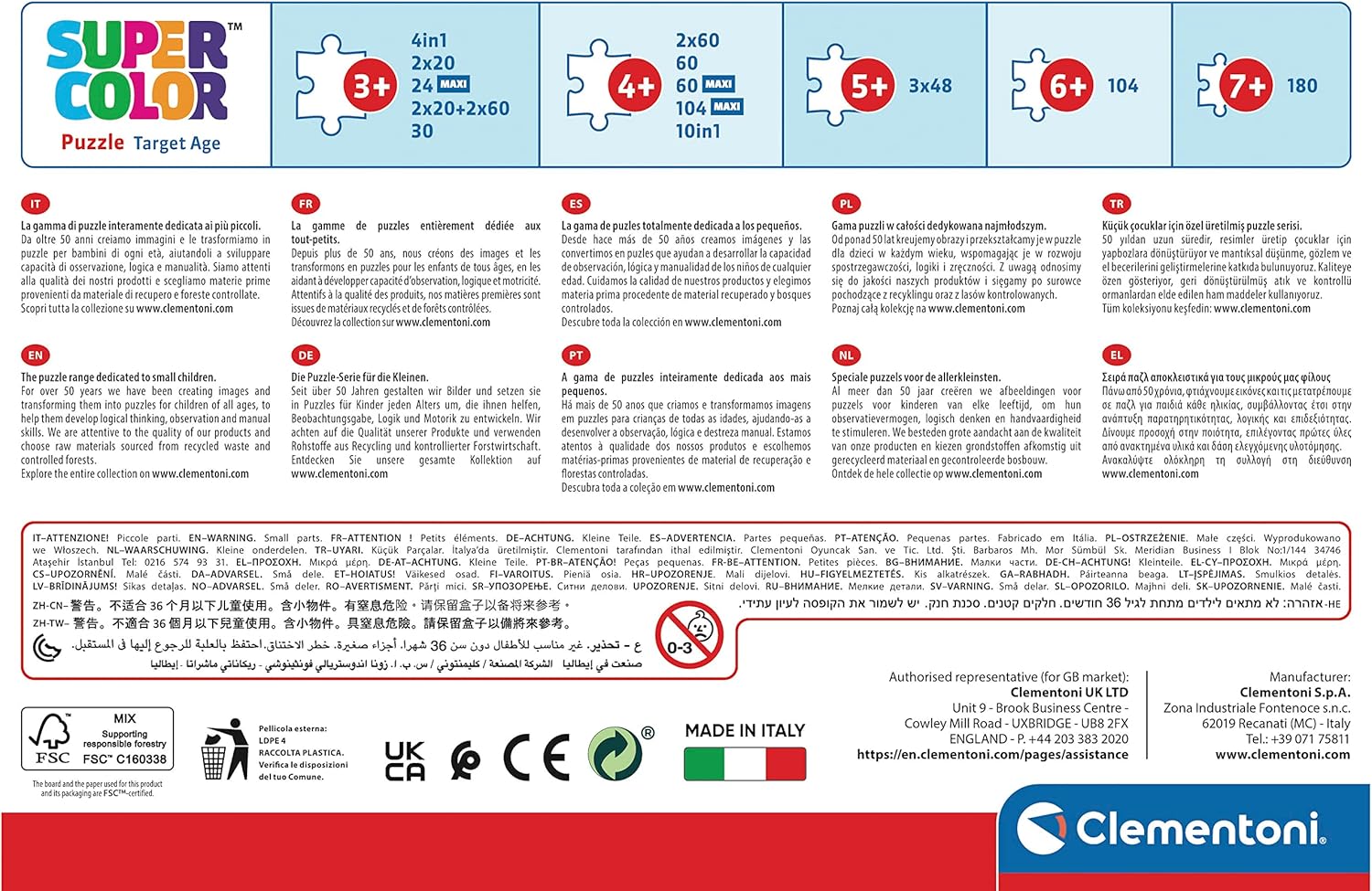 - Agudamente sintonizada com a importância da consciência ambiental, a Clementoni faz uso extensivo de materiais reciclados e evita quaisquer componentes que contenham poluentes. Feito na Itália.