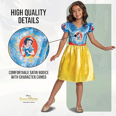 - VESTIDO ICÓNICO: Dale a tu princesita una experiencia mágica con este disfraz oficial de Blancanieves de Disney.
