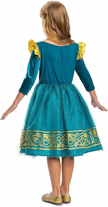 - Con este vestido oficial de Mérida verde y dorado seguramente te convertirás en una Highland Royal; incluye un vestido.