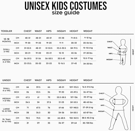 - Disponible en tallas Small (4 a 6 años), Medium (7 a 8 años) y Large (10 a 12 años).