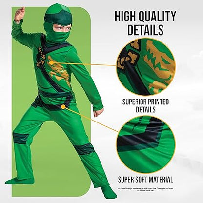 - ENTRA EN EL PERSONAJE: Conviértete en el legendario Ninja Verde con este disfraz LEGO Ninjago Lloyd, ¡perfecto para los fanáticos de la popular franquicia de temática ninja!