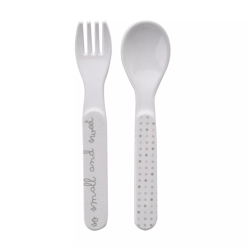 Inclui um prato, uma tigela, uma xícara e talheres primorosamente decorados com imagens impressas do adorado Dumbo em várias poses encantadoras, juntamente com a frase "Pequeno" em letras prateadas.