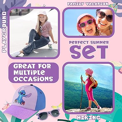 - Prepara a tu pequeño fanático de Disney para divertirse bajo el sol con estos lindos conjuntos de gorras de béisbol y gafas de sol. Los juegos incluyen una gorra para niña ligera y transpirable y un par de gafas de sol para niños, perfectas para brindar protección adicional a tu pequeña durante los calurosos días de verano.