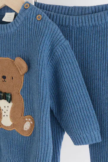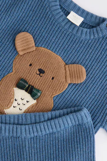 |Bebé| Conjunto de Blusa y Leggings de Punto 100% Algodón para Bebé - Osito Azul (0 meses a 2 años)