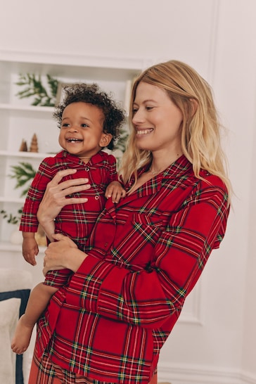 |Bebé| Pelele Rojo a Juego para Familia, Bebé, Navidad, Franela Cuadros (0 meses a 3 años)