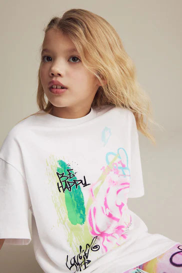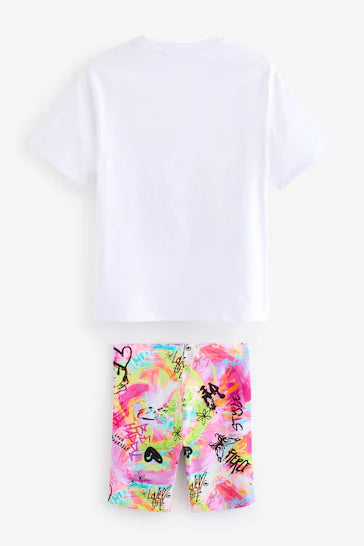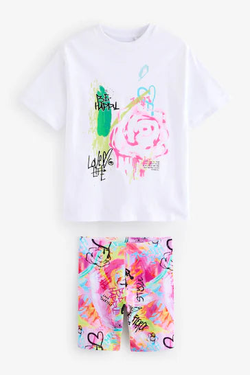 |Niña Grande| Conjunto de camiseta extragrande y culotte ciclista - Graffiti blanco (3-16 años)