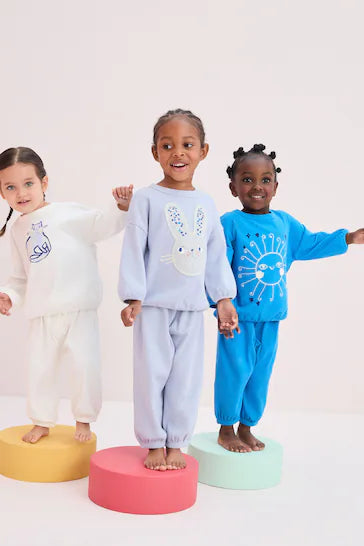 |Niña| Pack de 3 pijamas tipo jogger 100 % algodón - Azul personaje/crema (9 meses a 11 años)