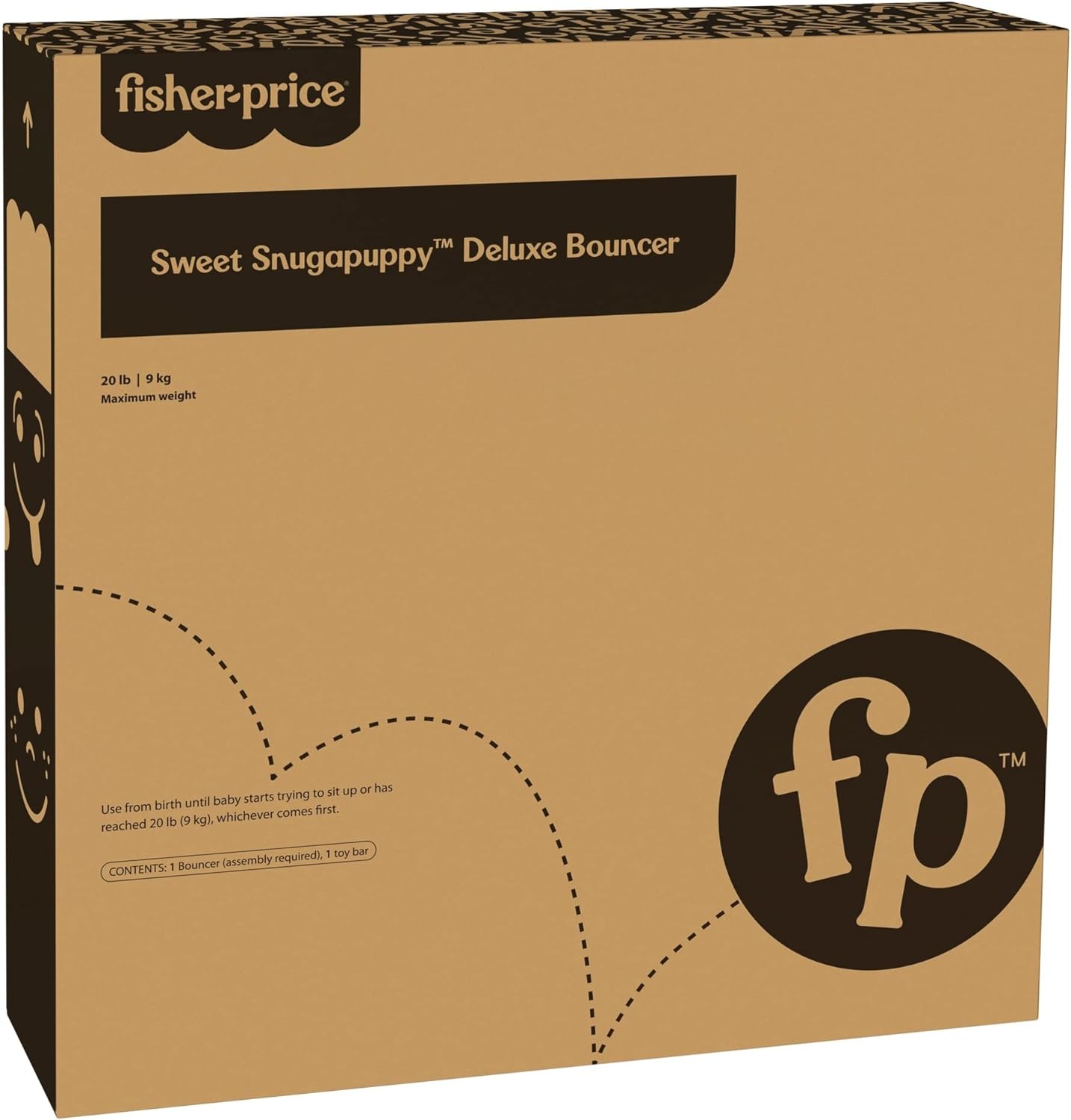- Fisher-Price Sweet Snugapuppy Hamaca de lujo, silla de bebé portátil que rebota con móvil colgante, música y vibraciones calmantes