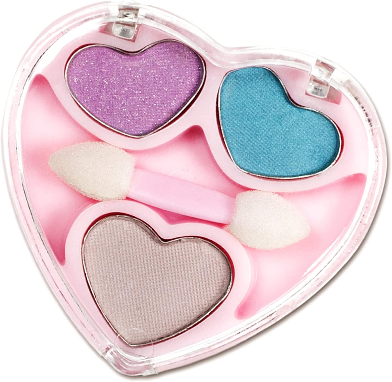 - Inclui 3 sombras com aplicador em estojo de coração, mini batom, 2 esmaltes, tatuagens, joias adesivas, adesivos de unha e guia.